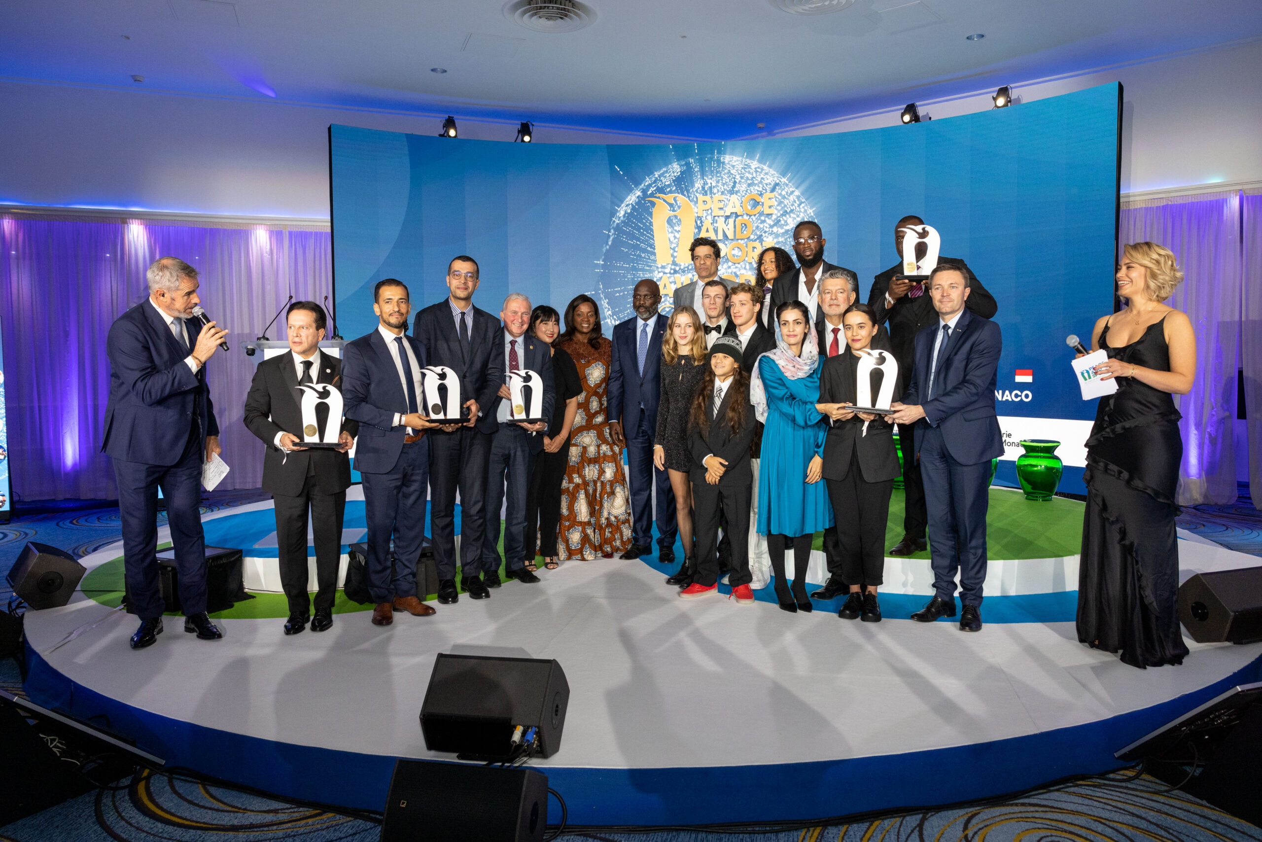 Au début de la cérémonie des Peace and Sport Awards 2022, S.E. Dr. George Manneh Weah, Président de la République du Libéria et Ballon d’Or 1995, s’est vu remettre par S.A.S. le Prince Albert II de Monaco le Prix Spécial Peace and Sport pour son engagement en faveur de la démocratie et de la réconciliation dans son pays.