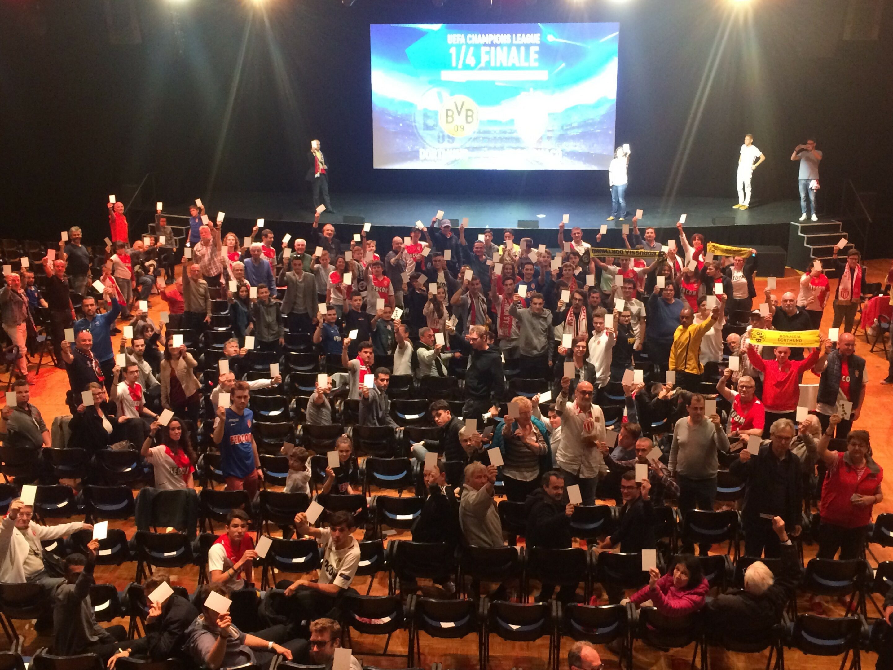 A l’initiative de Peace and Sport, l’Organisation pour la Paix par le Sport placée sous le Haut Patronage de S.A.S. le Prince Albert II de Monaco, les 800 supporters de l’Association Sportive de Monaco réunis pour la retransmission du ¼ Finale de Ligue des Champions entre le Borussia Dortmund et l’AS Monaco en Principauté, ont ainsi brandi leurs #WhiteCard, le symbole de la paix par le sport.