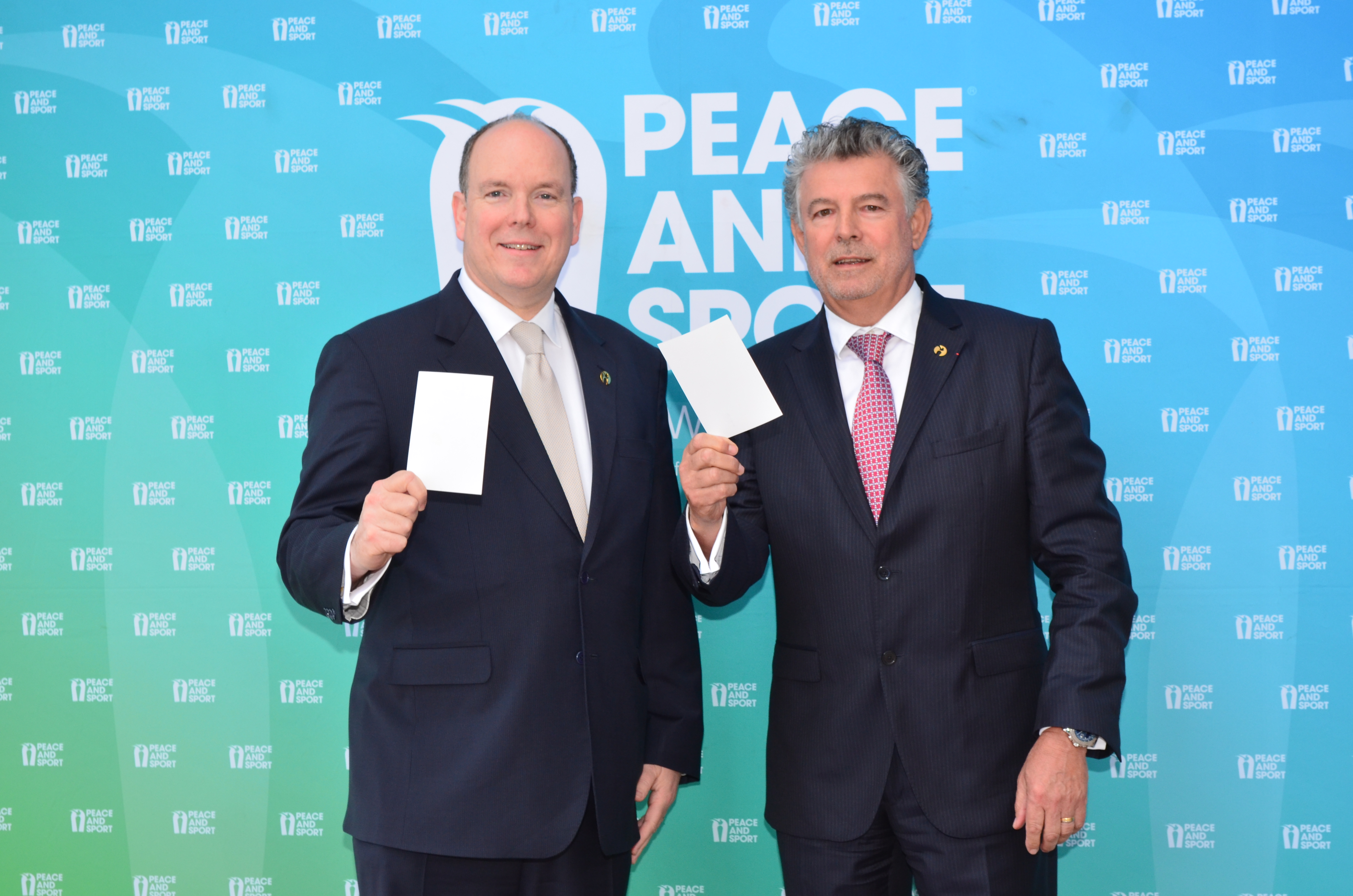Au cours d’une manifestation officielle qui s’est tenue à Monaco hier soir, Joël Bouzou, Fondateur de Peace and Sport et ancien médaillé olympique, s’est joint à Son Altesse Sérénissime le Prince Albert II de Monaco, afin d’inviter les athlètes et les citoyens à travers le monde à participer à la campagne annuelle #WhiteCard. Dans le cadre de cette initiative, les personnes sont conviées à se prendre en photo en brandissant un « carton blanc pour la paix », puis à publier leur photo sur les réseaux sociaux.