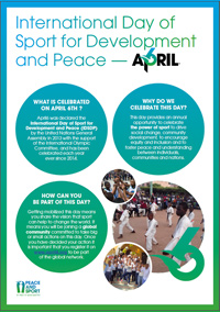 April6 was declared the International Day of Sport for Development and Peace (IDSDP) by the United Nations General Assembly in 2013 with the support of the International Olympic Committee, and has been celebrated each year ever since 2014.