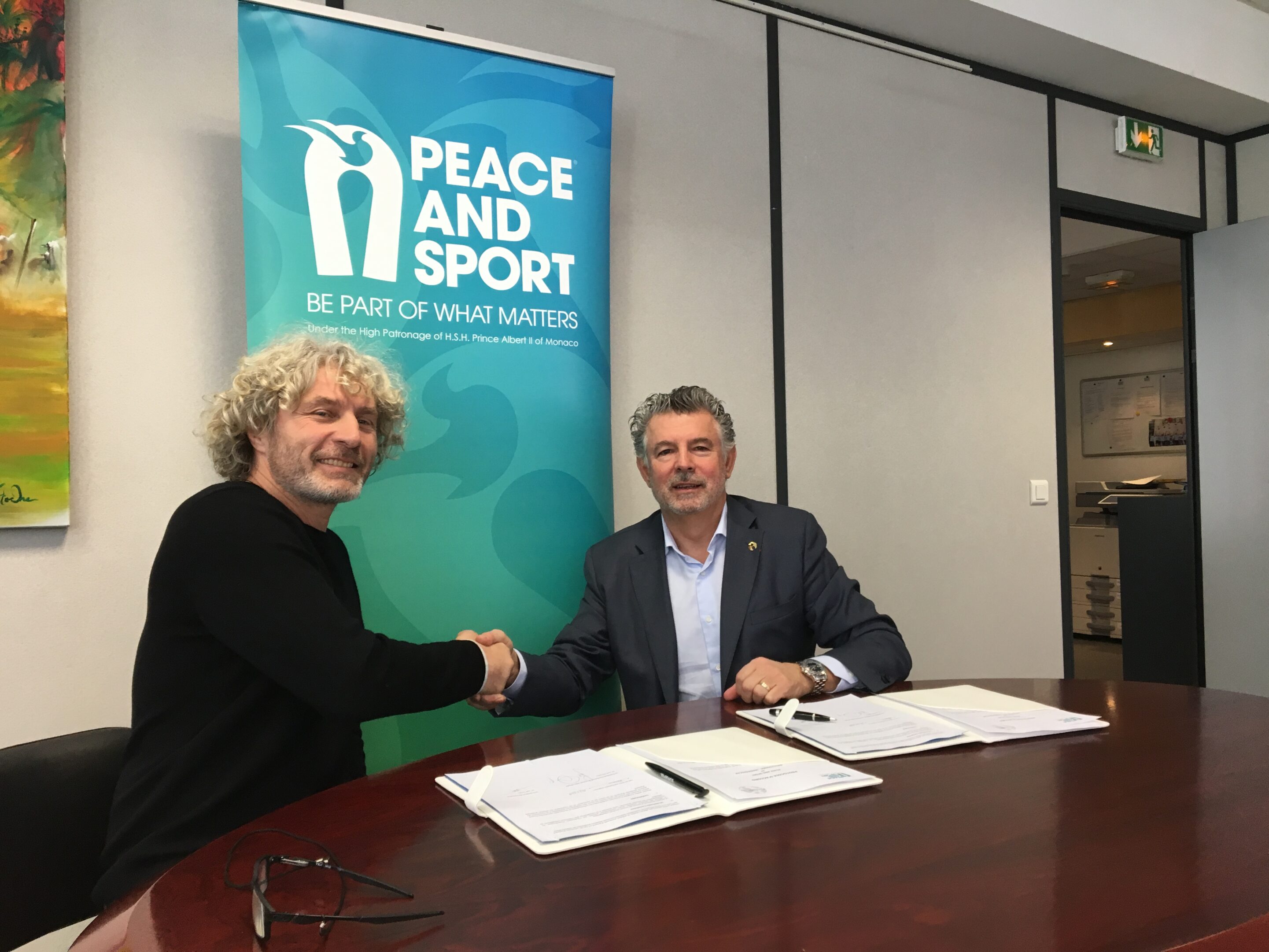 Mr Joel Bouzou, President and Founder of Peace and Sport signs a Memorandum of Understanding with Jef Tordo, “Champion For Peace” who is the founder of the NGO “PACHAMAMA” located in Madagascar!