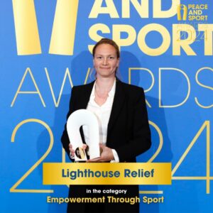 Lighthouse Relief receives recognition for its work in refugee camps, where sport enhances the mental and physical well-being of children and youth, providing them with strength and resilience in challenging circumstances.