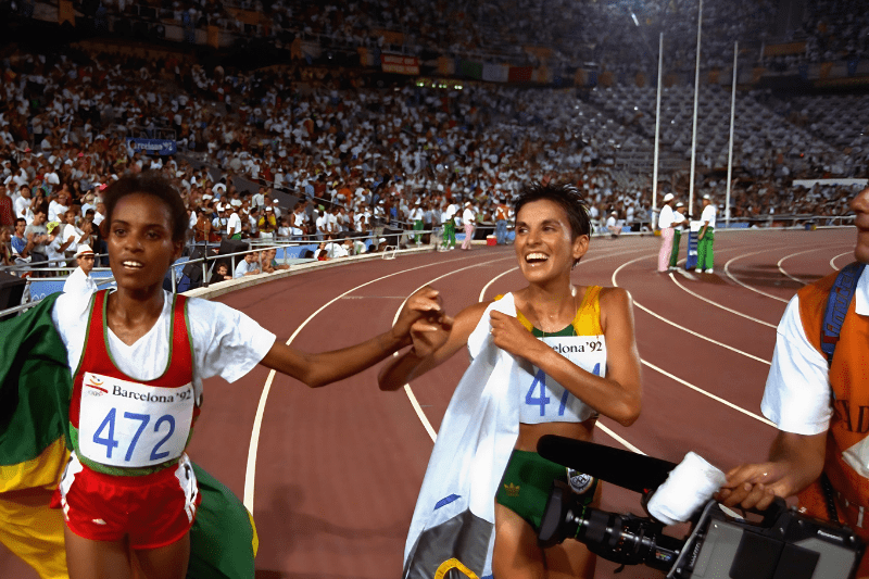 An icon in her rainbow nation, Elana Meyer made a big impact during the Barcelona Olympic Games where she ran a lap of honour hand in hand with Ethiopian athlete Derartu Tulu. Now at the head of an athletic academy, she is the ambassador of the Cap Marathon, the most famous marathon in Africa.